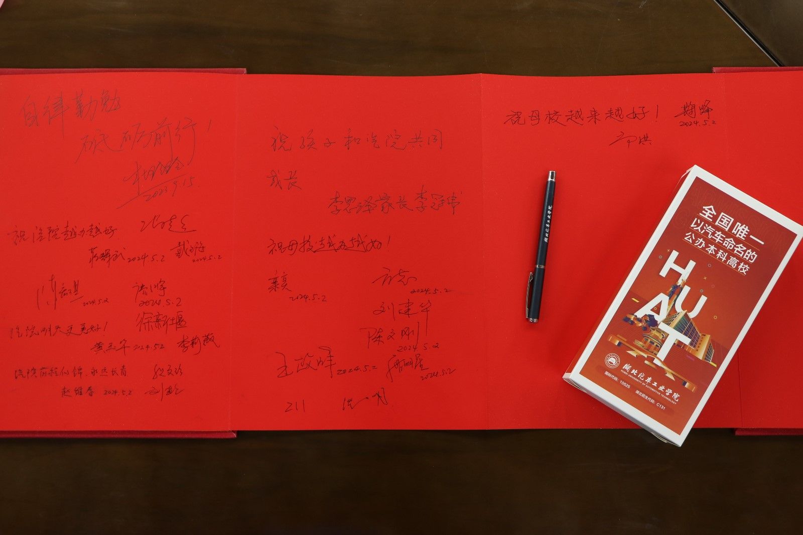 员工们纷纷发言,在红色签字簿上写下了对母校的真挚祝福,表示不论身在何地,将始终与母校根脉相连,共同维护汽院大家庭的温暖和荣耀,未来也将不遗余力为母校建设发展出谋划策,携手推进母校各项事业行稳致远。