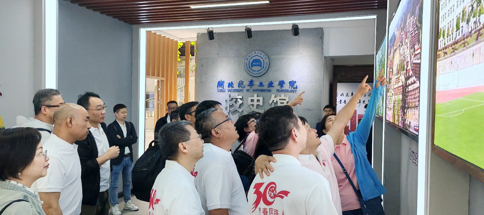 在校史馆中,员工们在泛黄的老照片前驻足许久,争相寻找自己当年的宿舍和教学楼所在位置,共同追忆那段留在汽院的求学岁月和奋斗拼搏的青春年华,并集体前往该班员工在毕业20周年返校时为母校赠送的“青春”石头前合影留恋。