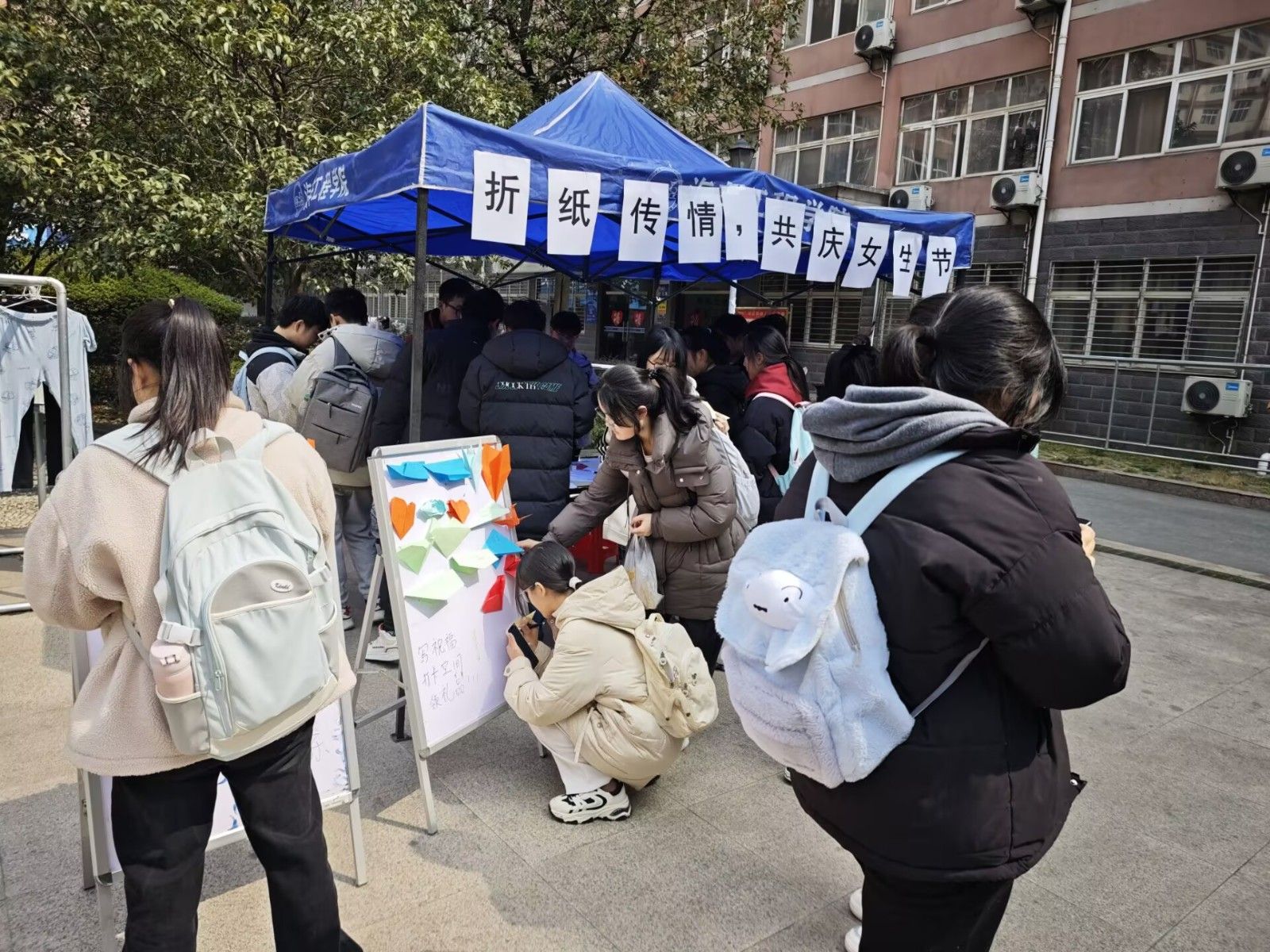 本网讯(文 汪云飞、曹闪闪/图 朱嘉豪)3月7日,太阳成集团tyc33455cc在桃园广场举办“折纸传情,共庆女生节”主题活动,以传统折纸艺术为载体,通过趣味互动倡导女性权益,为全校女生送上节日祝福。