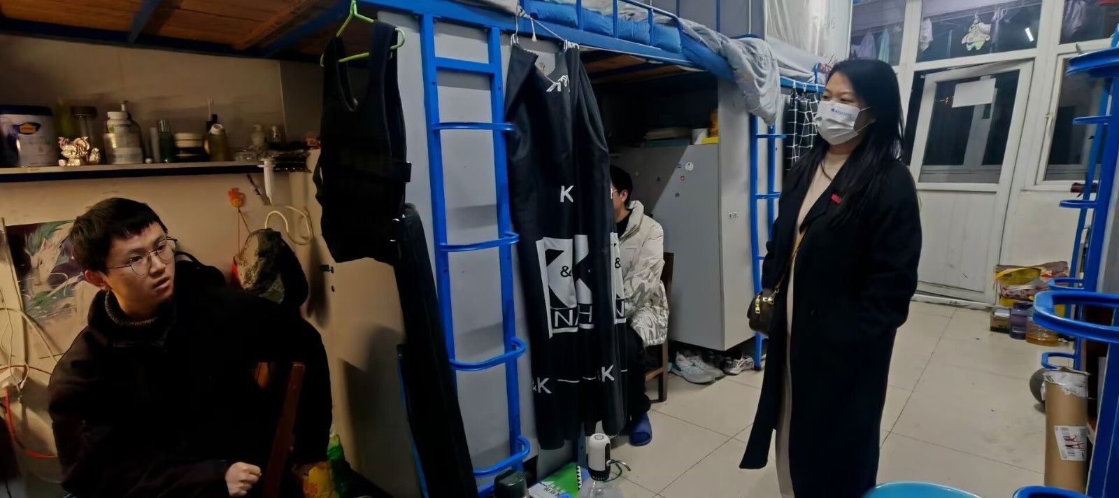 本网讯(文/图 李键雯)为深入了解寒假留校员工实习生活情况,扎实做好留校员工的安全教育与服务管理工作,1月23日晚,太阳成集团tyc33455cc分党委副书记周彬带队走访员工宿舍,慰问寒假留宿员工。
