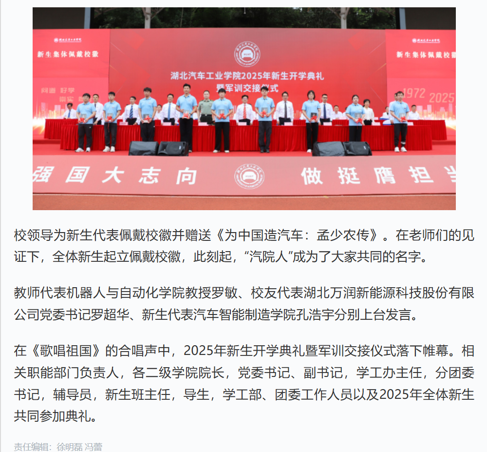 【中国教育在线】追求卓越 向车而行 2025级新生“大学第一课”温暖开讲