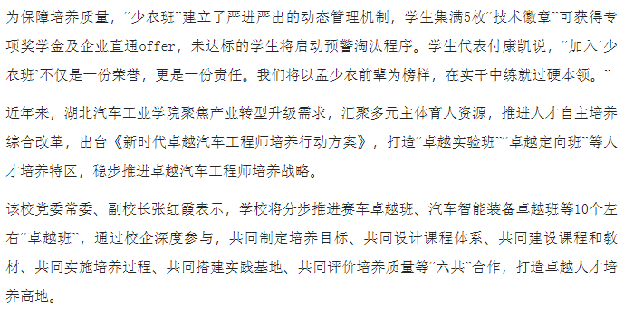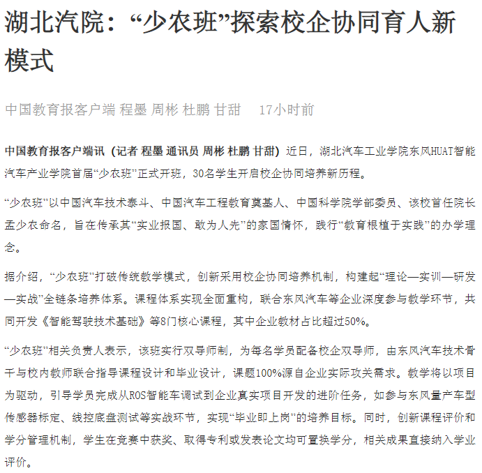 【中国教育报】湖北汽院:“少农班”探索校企协同育人新模式
