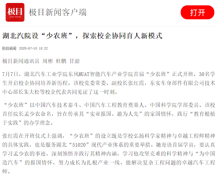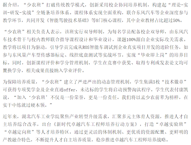 【极目新闻】湖北汽院设“少农班”,探索校企协同育人新模式