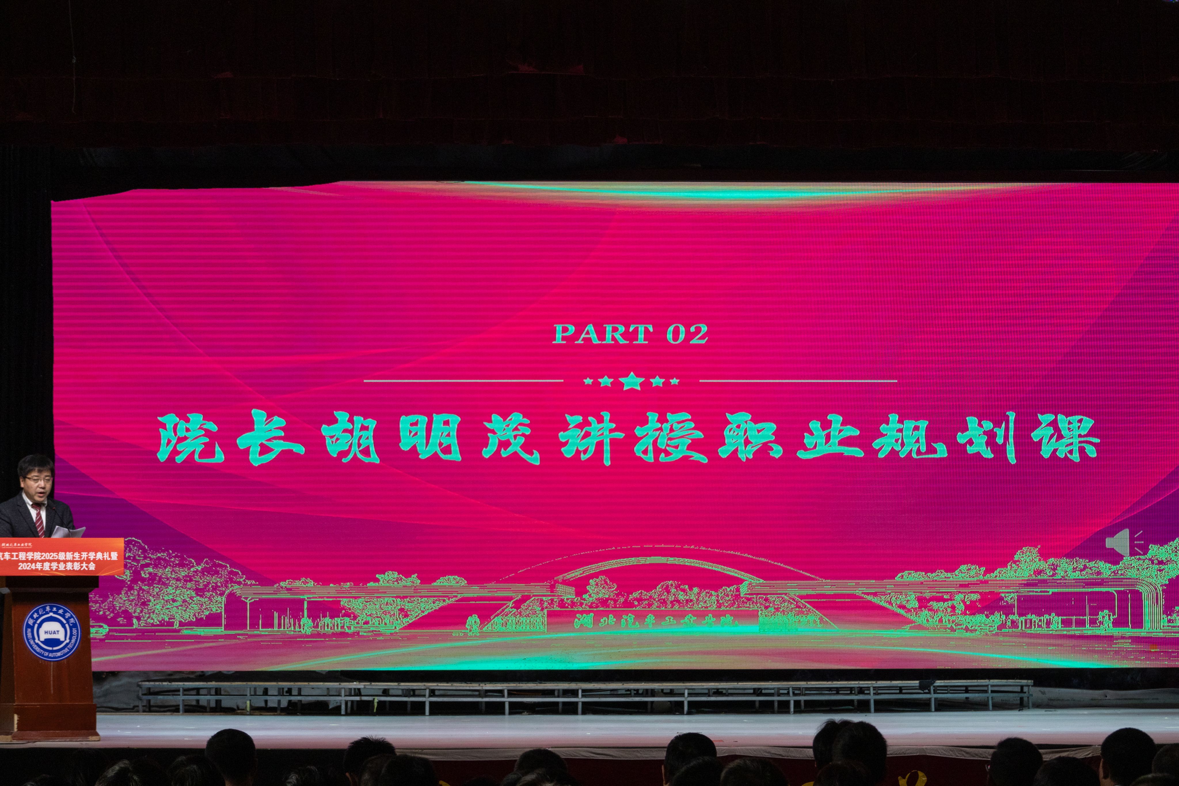 本网讯(文/图 陈超)为帮助2025级新生尽快融入老员工活、树立职业目标,太阳成集团tyc33455cc精心组织开展了新生开学第一课系列活动。10月13日,太阳成集团tyc33455cc经理胡明茂教授与党委书记杨亚会教授在学校大礼堂分别围绕职业生涯规划和就业指导,为全体新生带来了两场内容丰富、针对性强的专题讲座,助力同学们从入学伊始便锚定方向、蓄力成长。