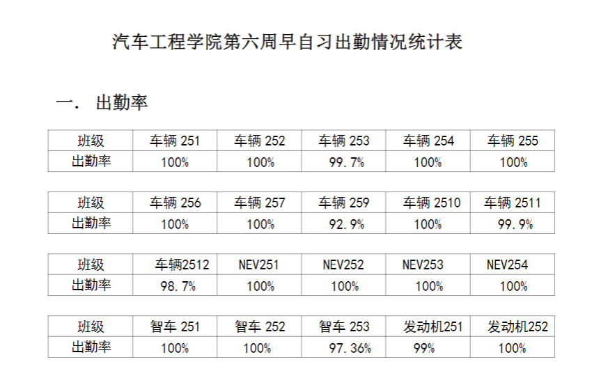 【督学正风】2025-2026学年第一学期第六周早自习出勤情况