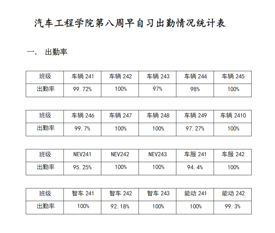 【督学正风】2024-2025学年第一学期第八周早自习出勤情况