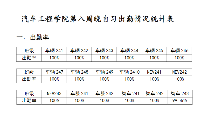 【督学正风】2024-2025学年第一学期第八周晚自习出勤情况